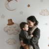 L’adesivo murale tessile ‘Cielo Stellato’ presenta una mezzaluna addormentata, un nuvoletta giocoso e altri due compagni. Questo adesivo emana tenerezza e racconta storie incantate sotto il cielo notturno. Le tonalità neutre del marrone aggiungono un tocco di calore e tranquillità. Trasforma ogni notte in un viaggio nel mondo dei sogni!