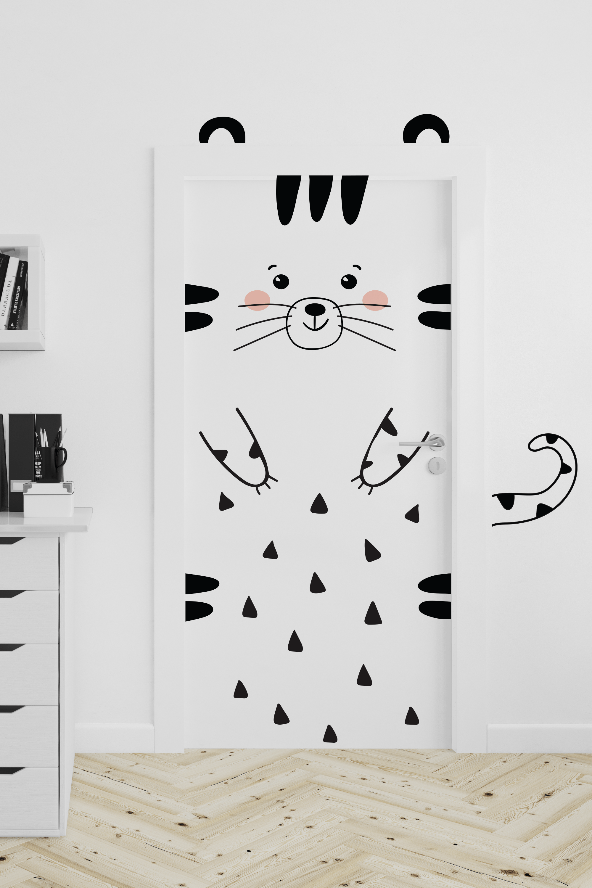 Una semplice porta può essere personalizzata e trasformata in una tigre con il nostro adesivo. L’illustrazione è minimalista, con influenze scandinave che si adatteranno facilmente a qualsiasi stanza.